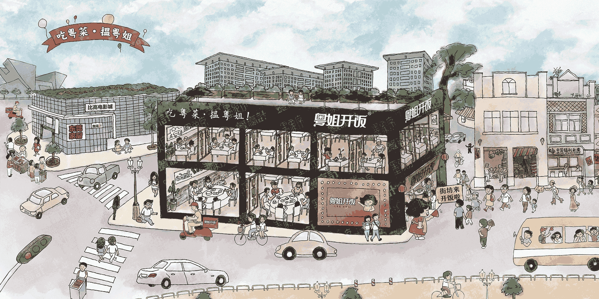 粤姐开饭把改造后的形象应用到陆续开业的新店里,其他老门店亦逐渐进行新旧标识的过渡交替。实力、文化、知名度、形象俱备,只待品牌完全展开,充分发挥潜力和优势,即可在更广阔的市场放手竞争。