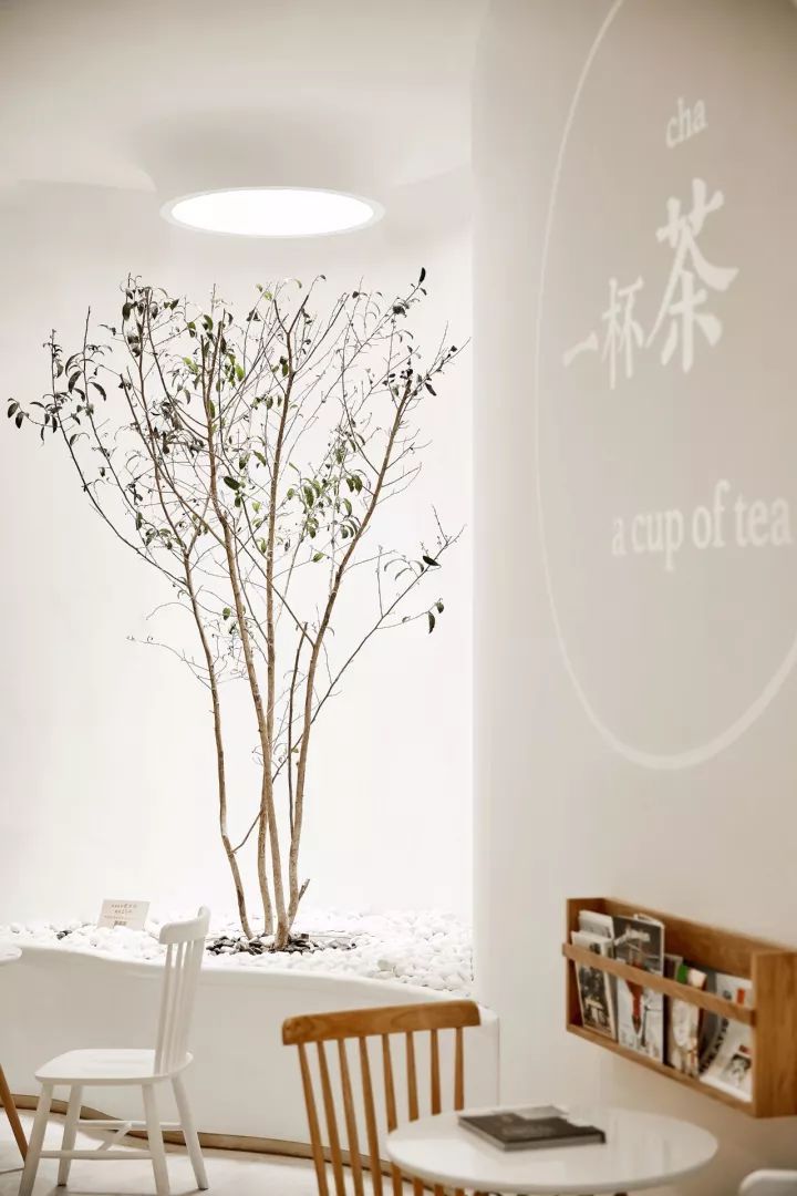在空间上,不仅是这棵充满自然禅意的老茶树,还是墙上微妙的投影,各个细节和设计都能让人在这个场景中去感受茶的灵魂。