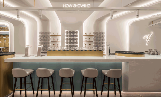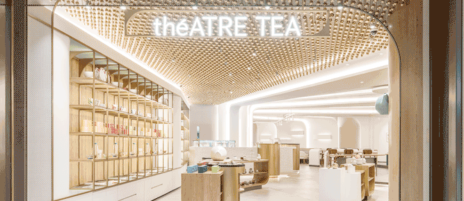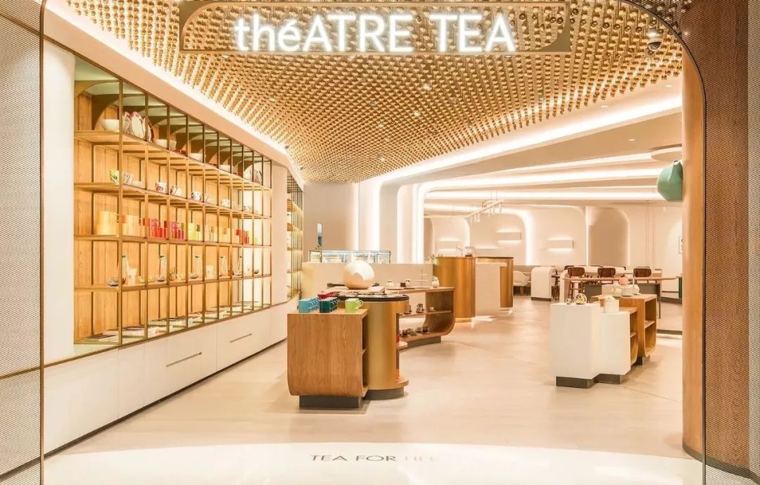 théATRE是茶「thé」和 剧场 「theatre」的首次融合,设计师将茶元素发挥到极致,打造了一个沉浸式剧场感的茶饮空间。