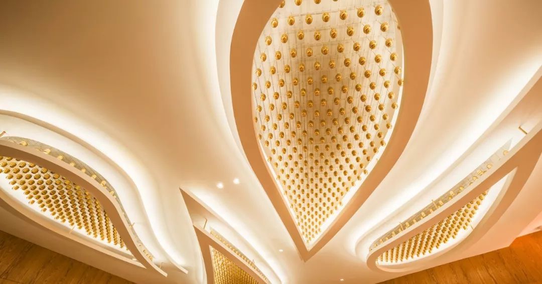 从入口看去,金色的主调引人注目。一眼看去有种层层深入的空间美感,遮掩中带着让人期待的神秘感。