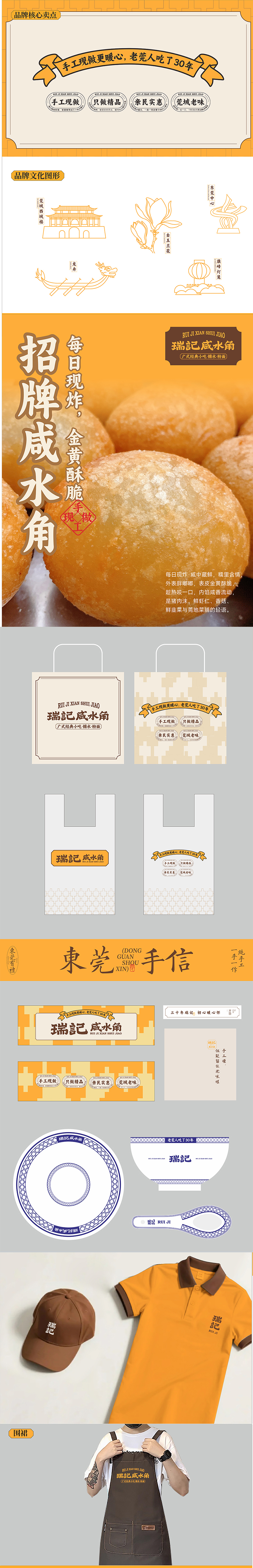 “瑞记咸水角”作为深耕东莞30年的广式小吃品牌,以手工现做的咸水角、经典包点及糖水为核心产品,承载着老莞人的味觉记忆。为应对新消费趋势,餐赢计团队通过品牌战略定位、视觉形象(VI)、空间体验等系统性升级,以“经典年轻化”为核心策略,强化文化认同感,拓展客群边界,将“瑞记”从区域小吃店升级为“广式经典生活方式符号”,实现传统品牌的现代化破局。